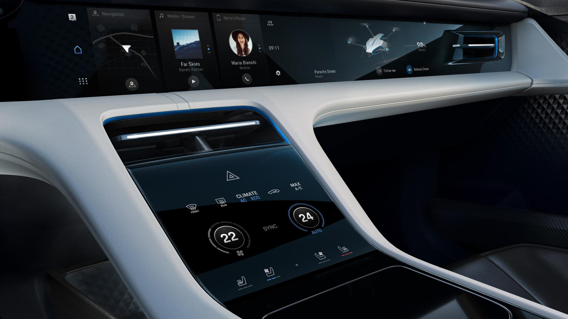 The cabin is filled with touchscreens and LED lighting, making it look very futuristic. It also features some really nifty seats and a cool cargo area. Inside, it looks like something out of Altered Carbon. Which is what you want from a futuristic electric car.
