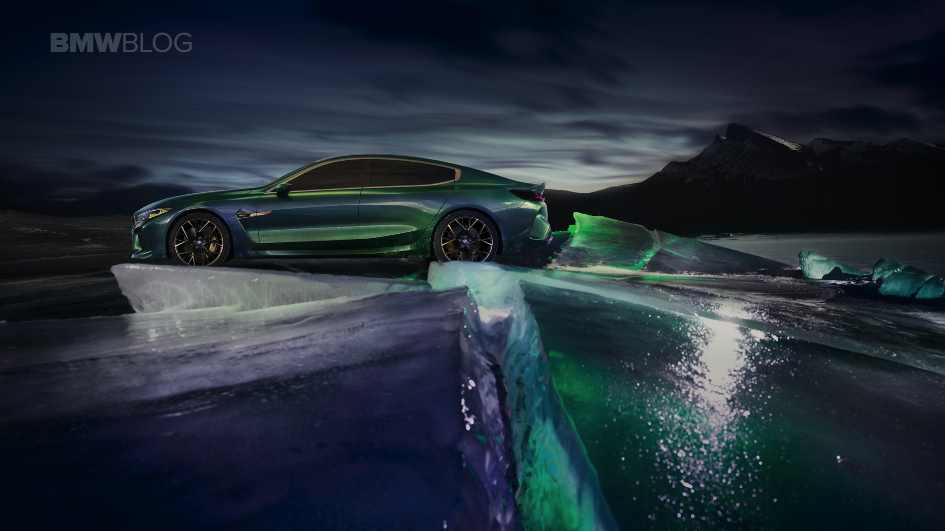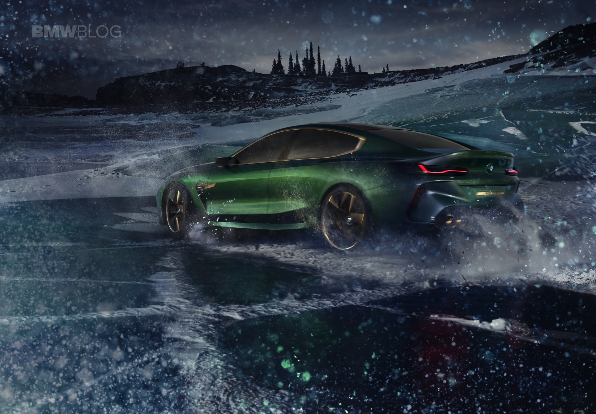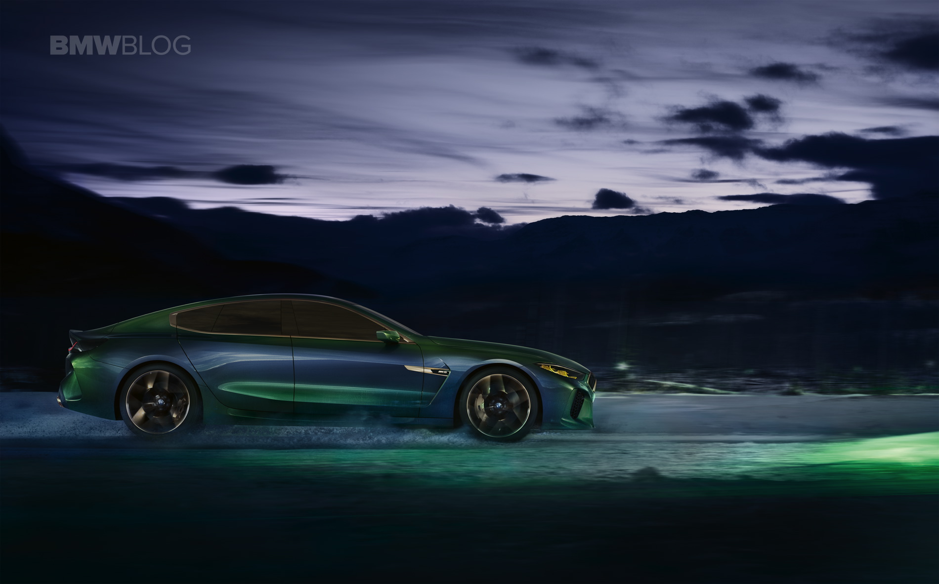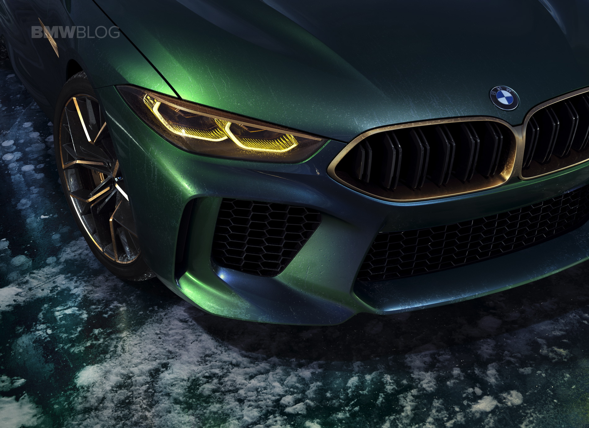 The BMW Concept M8 Gran Coupe is painted in the Salève Vert paint finish, a color that changes from green to greyish blue in different lights.